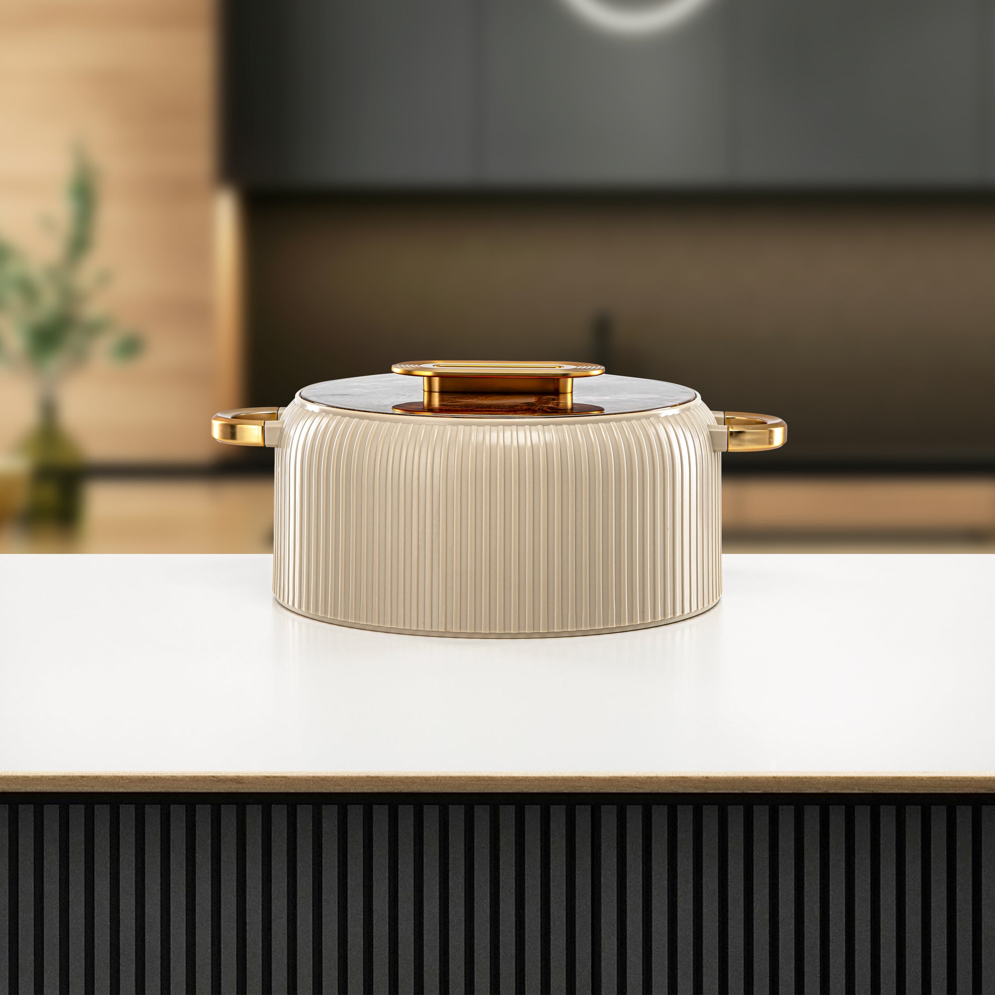Almarjan 3 Liter Rectangle Plastic Hot Pot Beige & Gold - HP03-300 Beige Gold