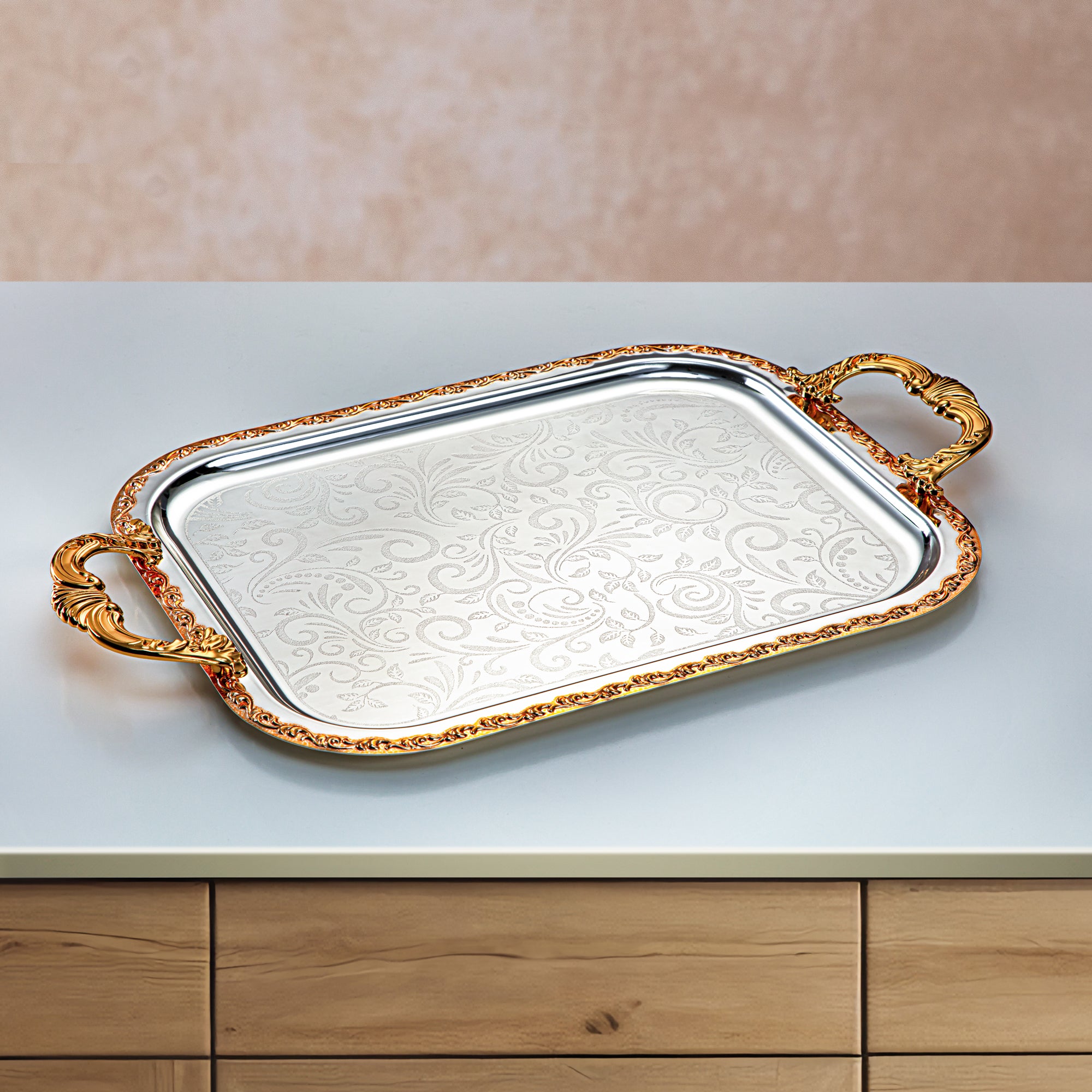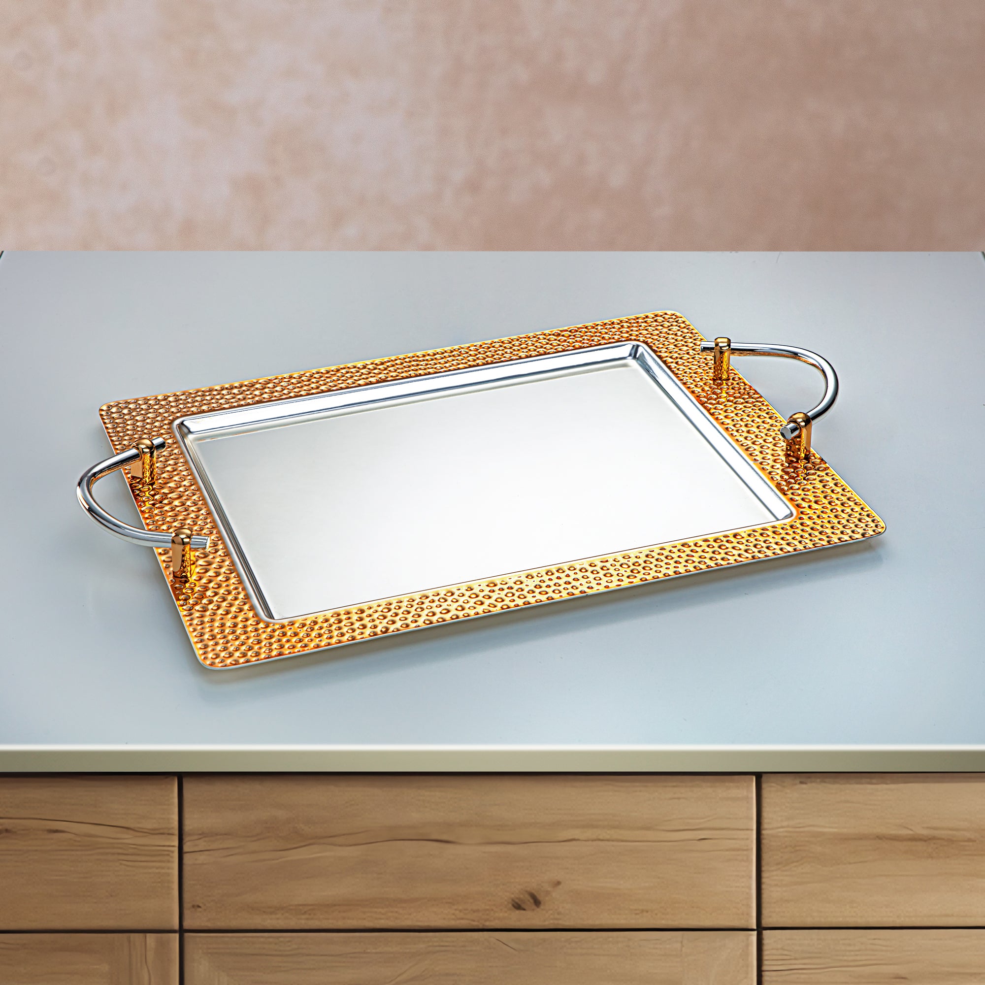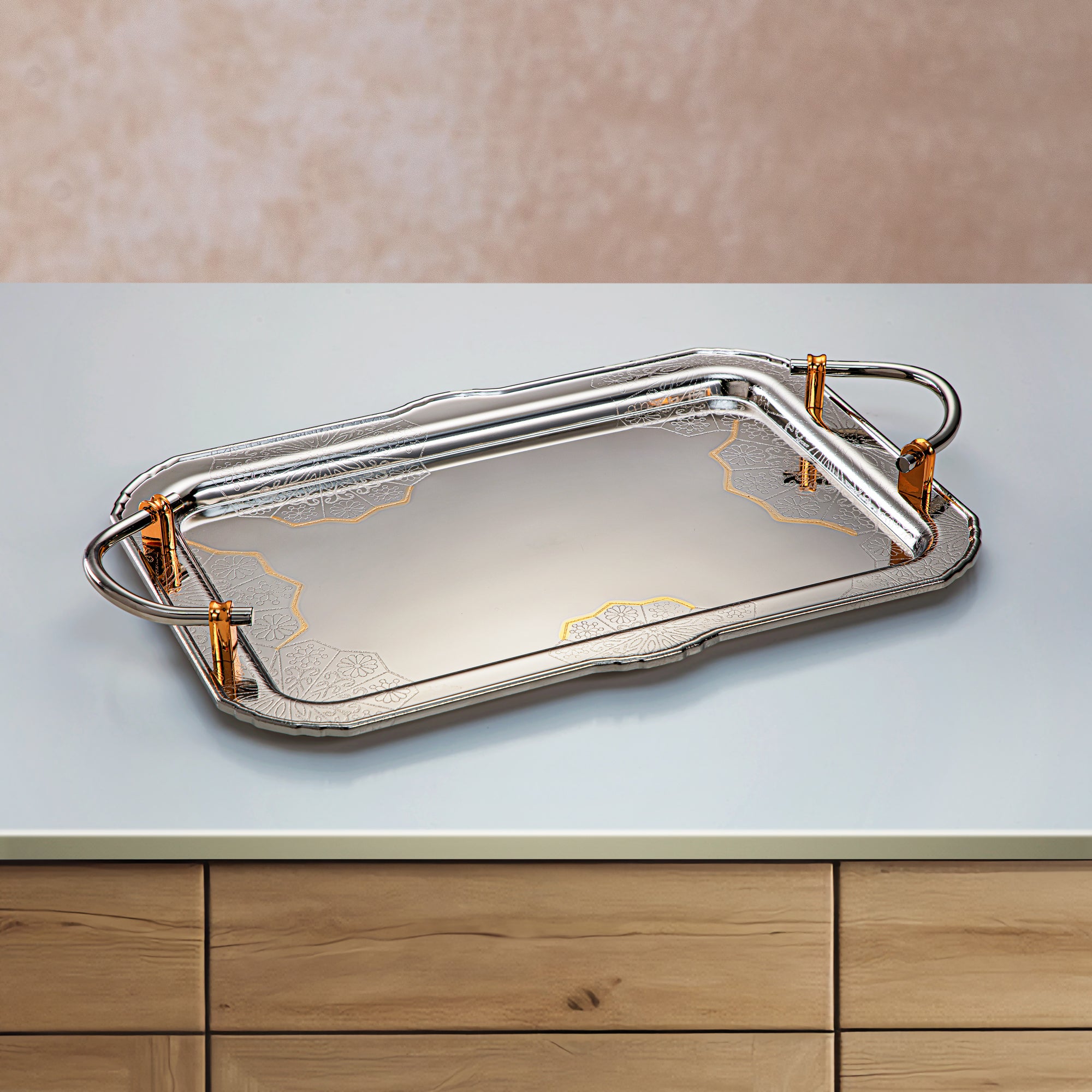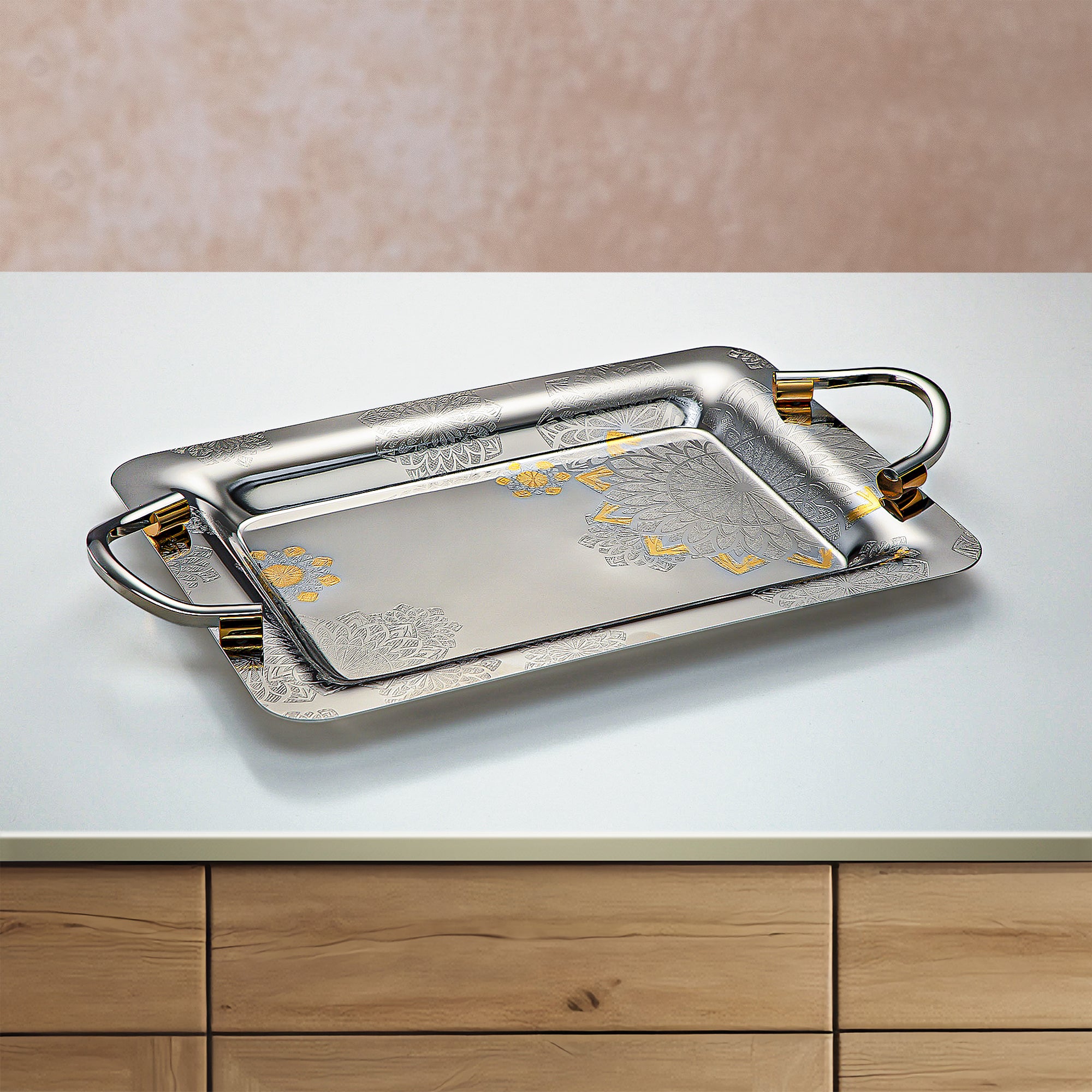 Almarjan 60 CM Tahani Collection Stainless Steel Koozy Tray Silver & Gold - H23EPG24