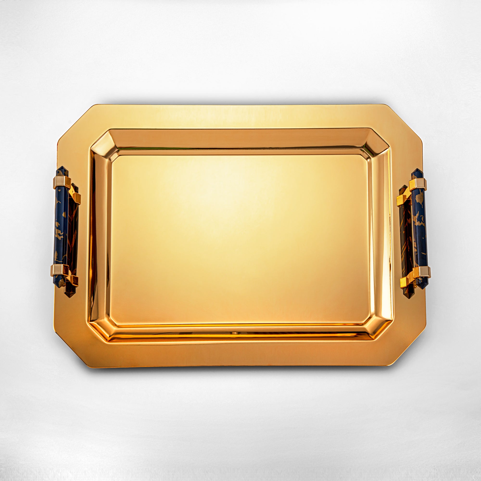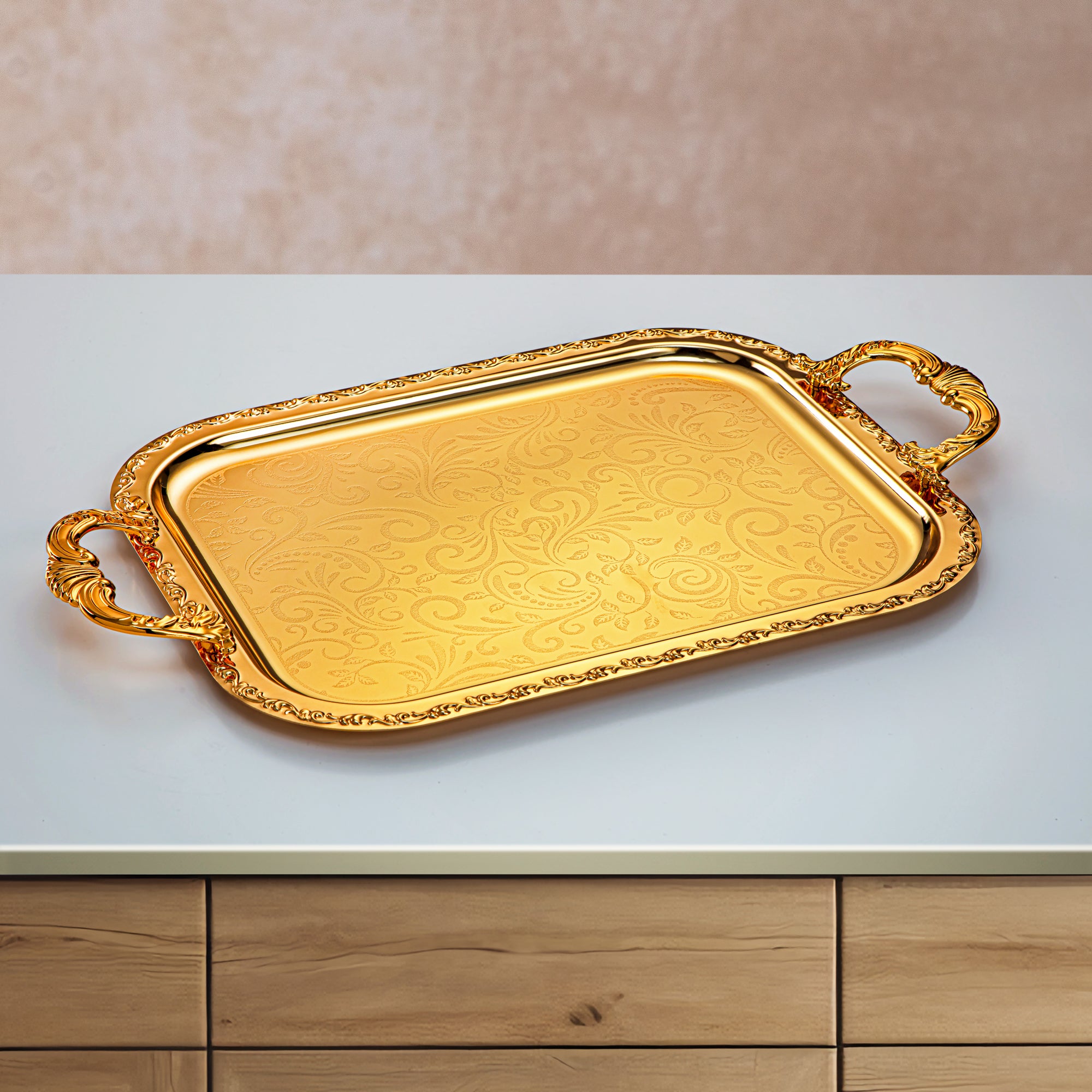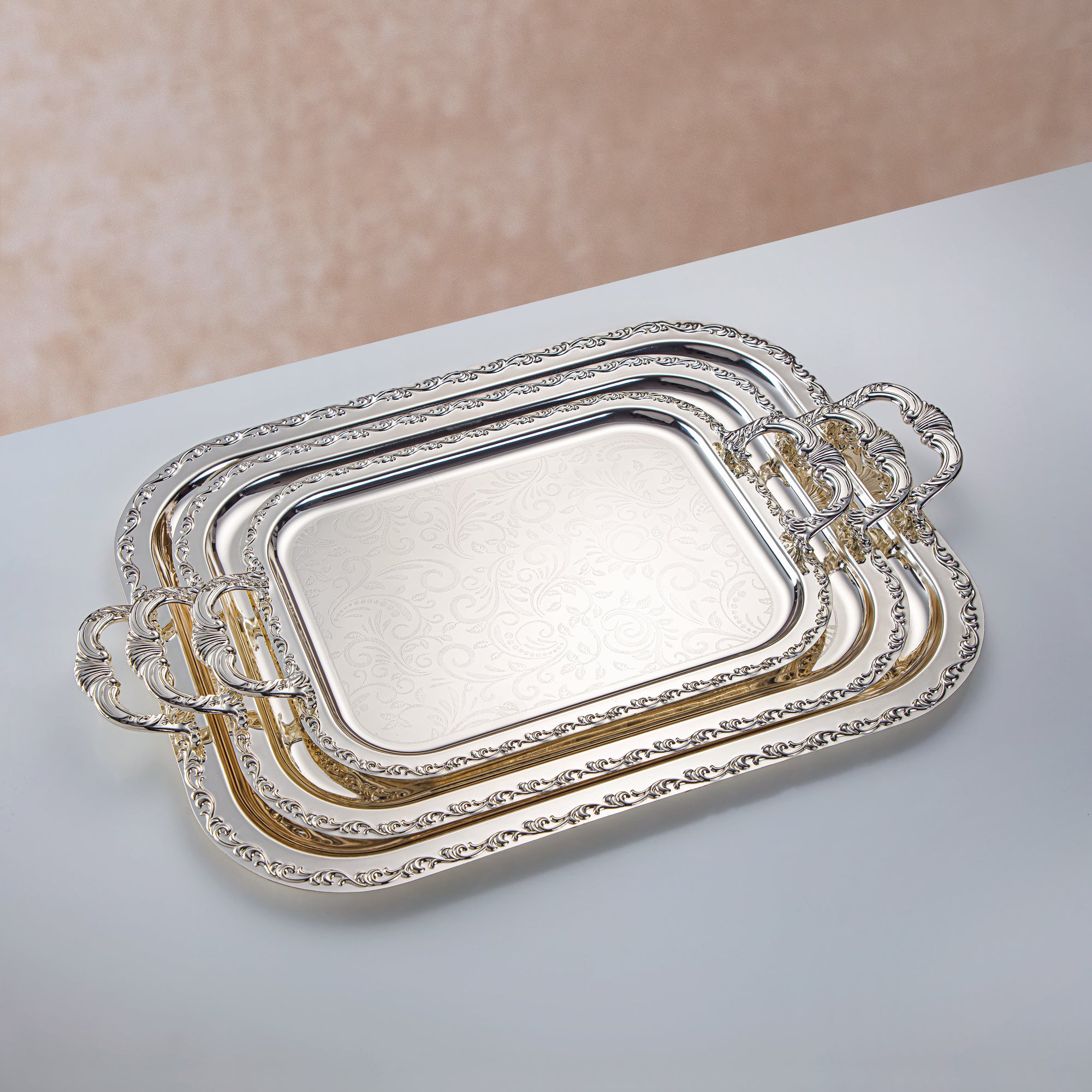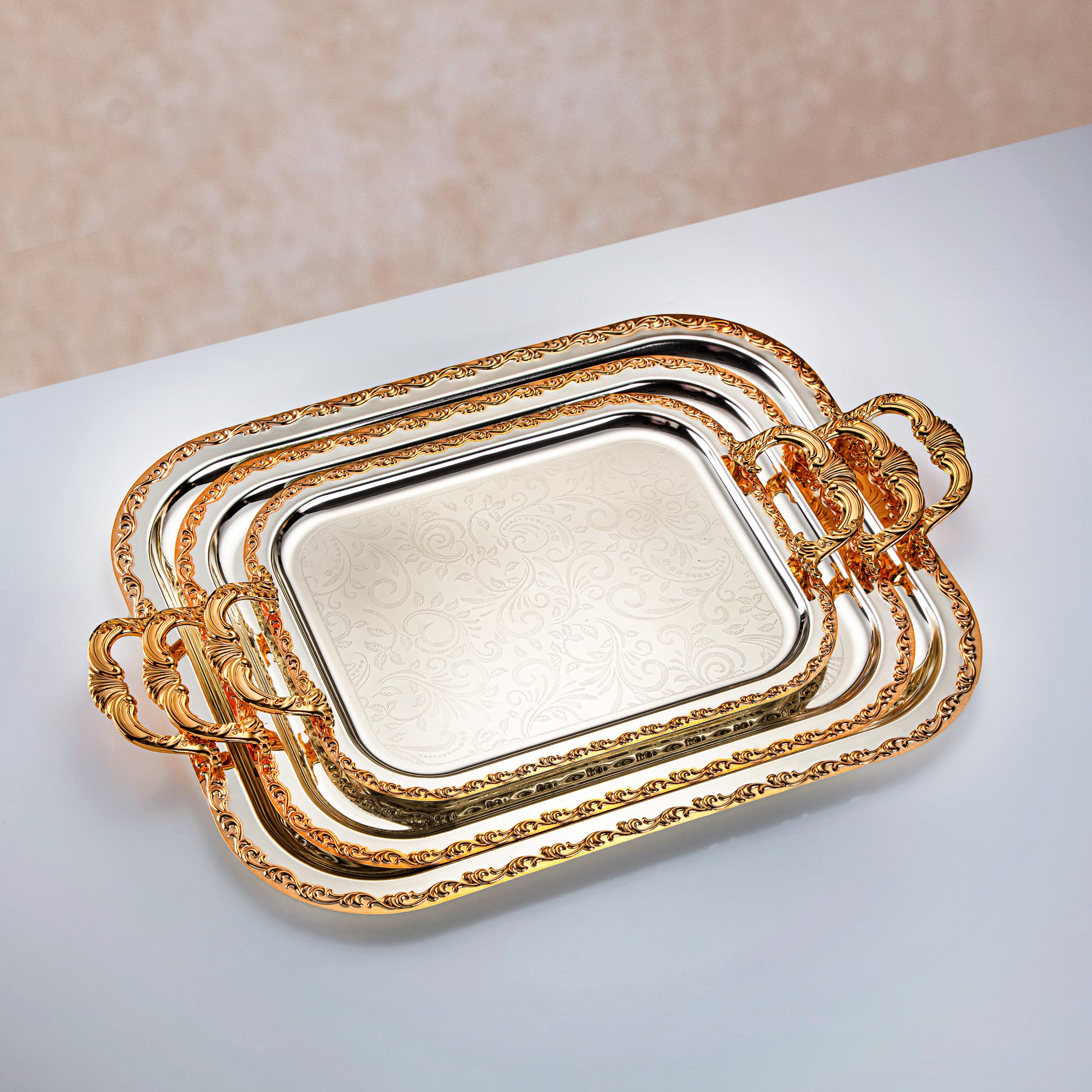 Almarjan 60 CM Tahani Collection Stainless Steel Koozy Tray Silver & Gold - H23EPG24