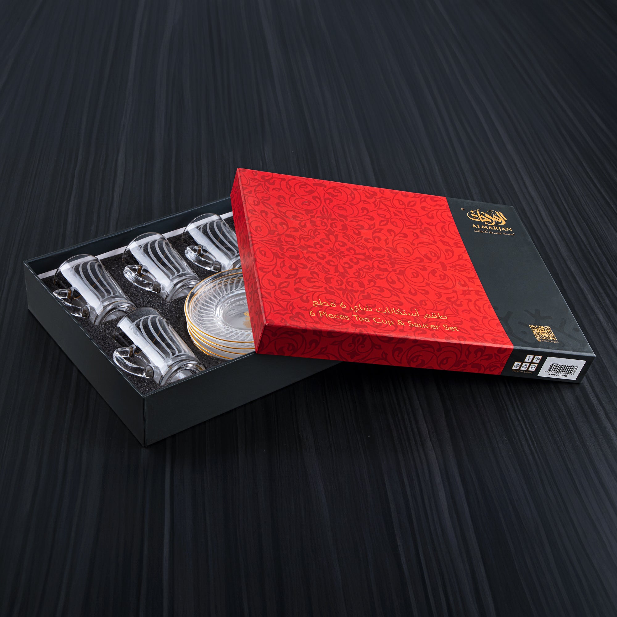 Almarjan 6 Pieces Wave Collection Glass Tea Cup With Golden Rim - GLS2630041