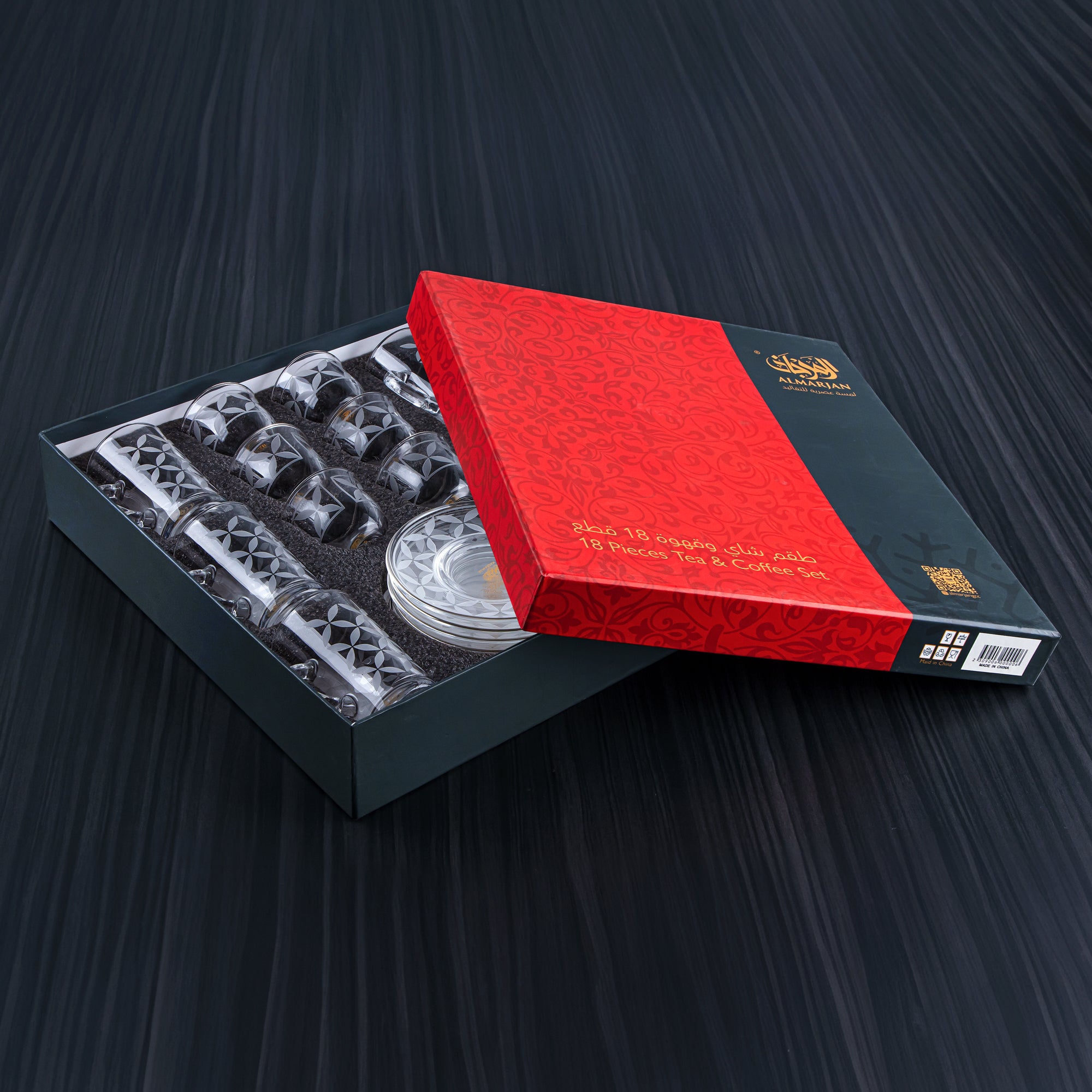 This Almarjan 18 Pieces Crave Collection Glass Tea & Coffee Set is the perfect way to enhance any gathering or occasion with family and friends. With its intricate patterns and delicate design, it brings luxury to your table. Its elegant glass material makes it a timeless piece, bringing sophistication and style to any event.